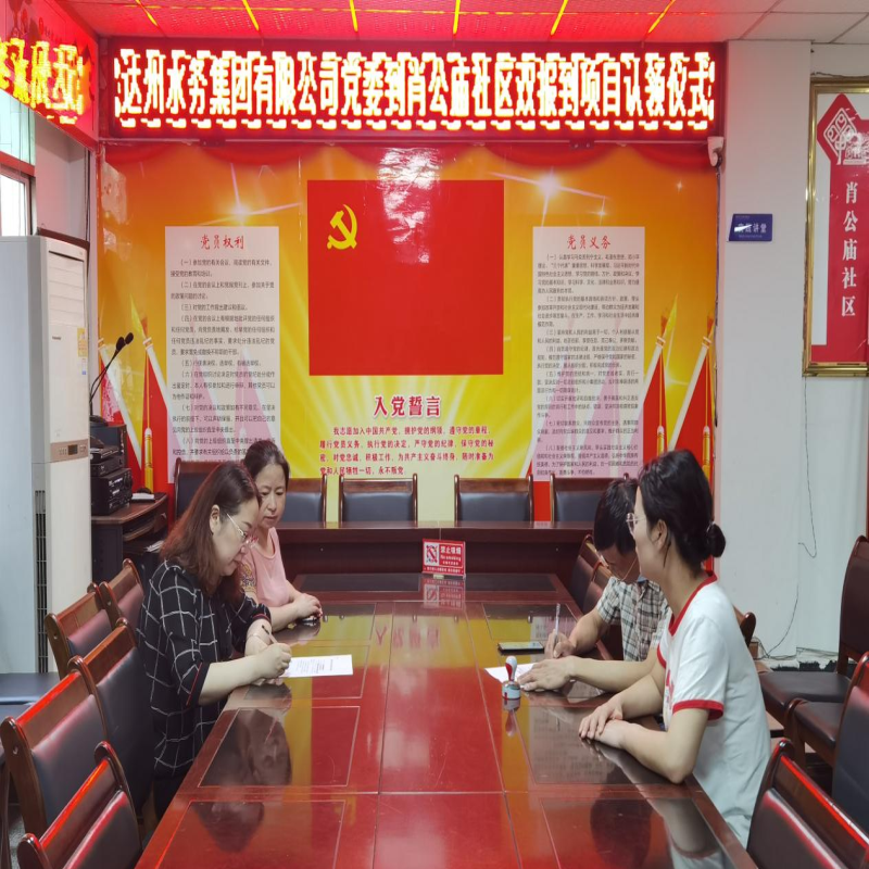 5月26日上午,集團(tuán)黨委副書記、工會(huì)主席李芙蕖代表集團(tuán)黨委到公司總部新駐地肖公廟社區(qū),就開(kāi)展黨員社區(qū)“雙報(bào)到”工作與社區(qū)黨支部簽署本年度《達(dá)州市通川區(qū)社區(qū)服務(wù)項(xiàng)目認(rèn)領(lǐng)協(xié)議書》,完成了黨委到該社區(qū)“雙報(bào)到”的初次對(duì)接。