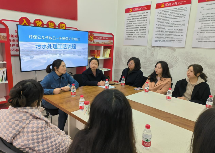 在黨員活動(dòng)室,大家首先集體學(xué)習(xí)了黨的二十大報(bào)告中有關(guān)環(huán)保的系統(tǒng)部署?;萑鬯局鞴堋Ⅴr家壩污水處理廠廠長(zhǎng)王立梅同志向大家介紹了惠泉公司基本情況、周家壩污水廠的建設(shè)歷程,詳細(xì)講解了污水處理工藝流程,并共同觀看污水處理科普片,大家進(jìn)行了面對(duì)面交流。