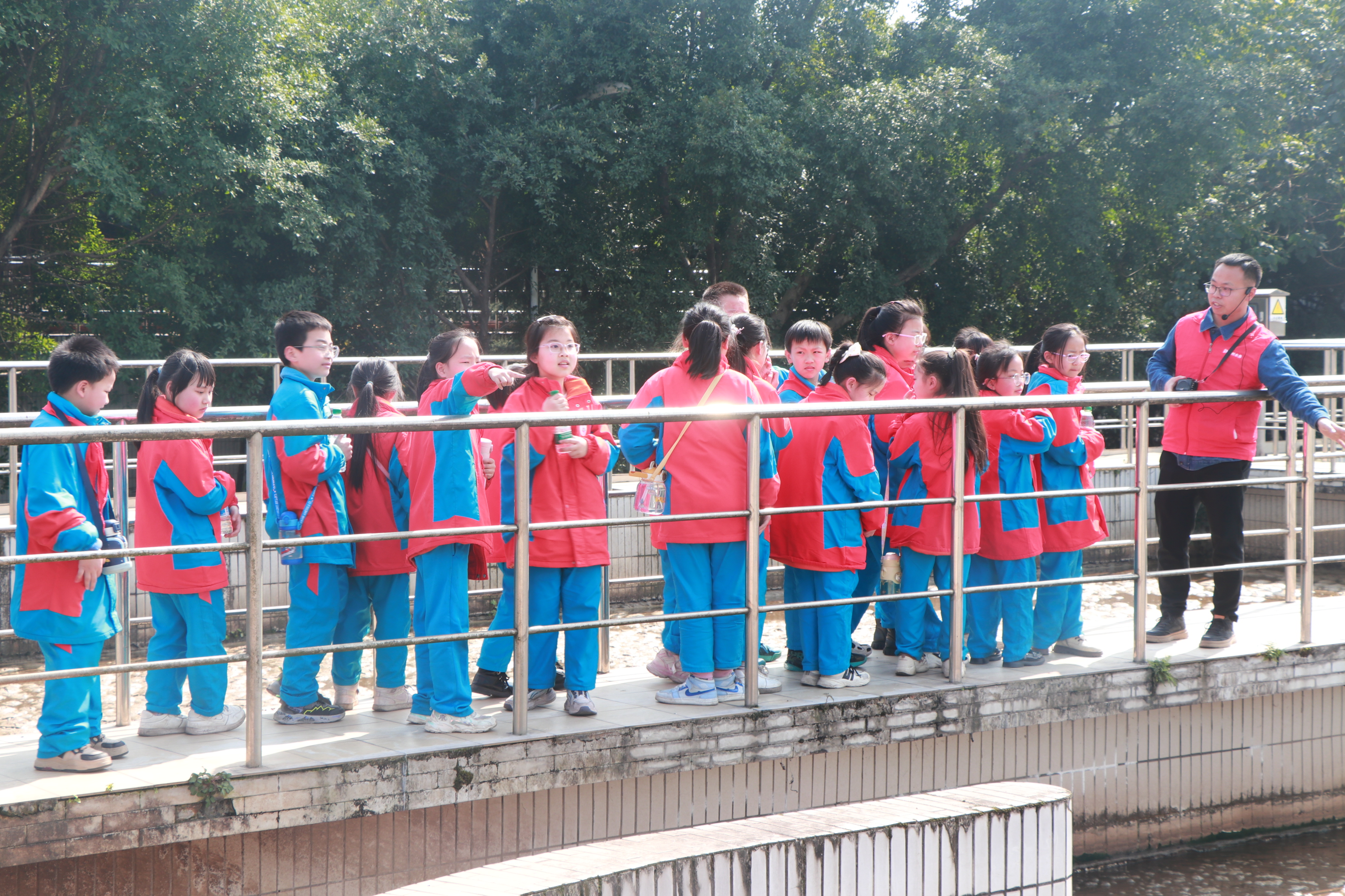 然后的實地參觀環(huán)節(jié),師生依次走過生化池、二沉池、出水口等區(qū)域。了解生化池里微生物“吃掉”污染物的神奇過程,目睹渾濁污水逐步變成清澈水流,對污水處理的復(fù)雜工藝和神奇效果有了直觀體驗。
