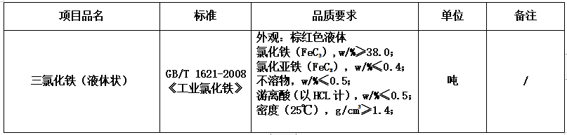 2.1 項目名稱:達州市惠泉污水處理有限公司2020年度三氯化鐵采購項目