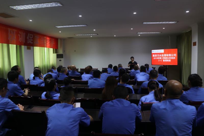 鑒于當前環(huán)保新形式需要,為努力打造一支高素質、高效率、高執(zhí)行力的團隊,使公司在激烈的市場競爭中展現(xiàn)出較強的生命力和競爭力,惠泉公司本年度第二次全員培訓在鮮家壩污水廠會議室開班。集團公司副總、惠泉公司執(zhí)行董事李虹霖出席開班動員會。